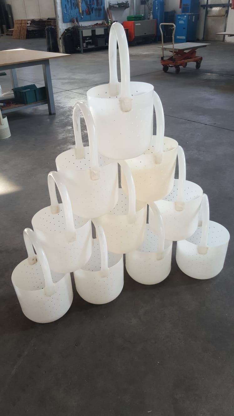realizzati in PE ad alta densità (PE-HD), materiale idoneo ai processi di decapaggio grazie alla sua elevata resistenza agli agenti chimici e alla buona stabilità strutturale.