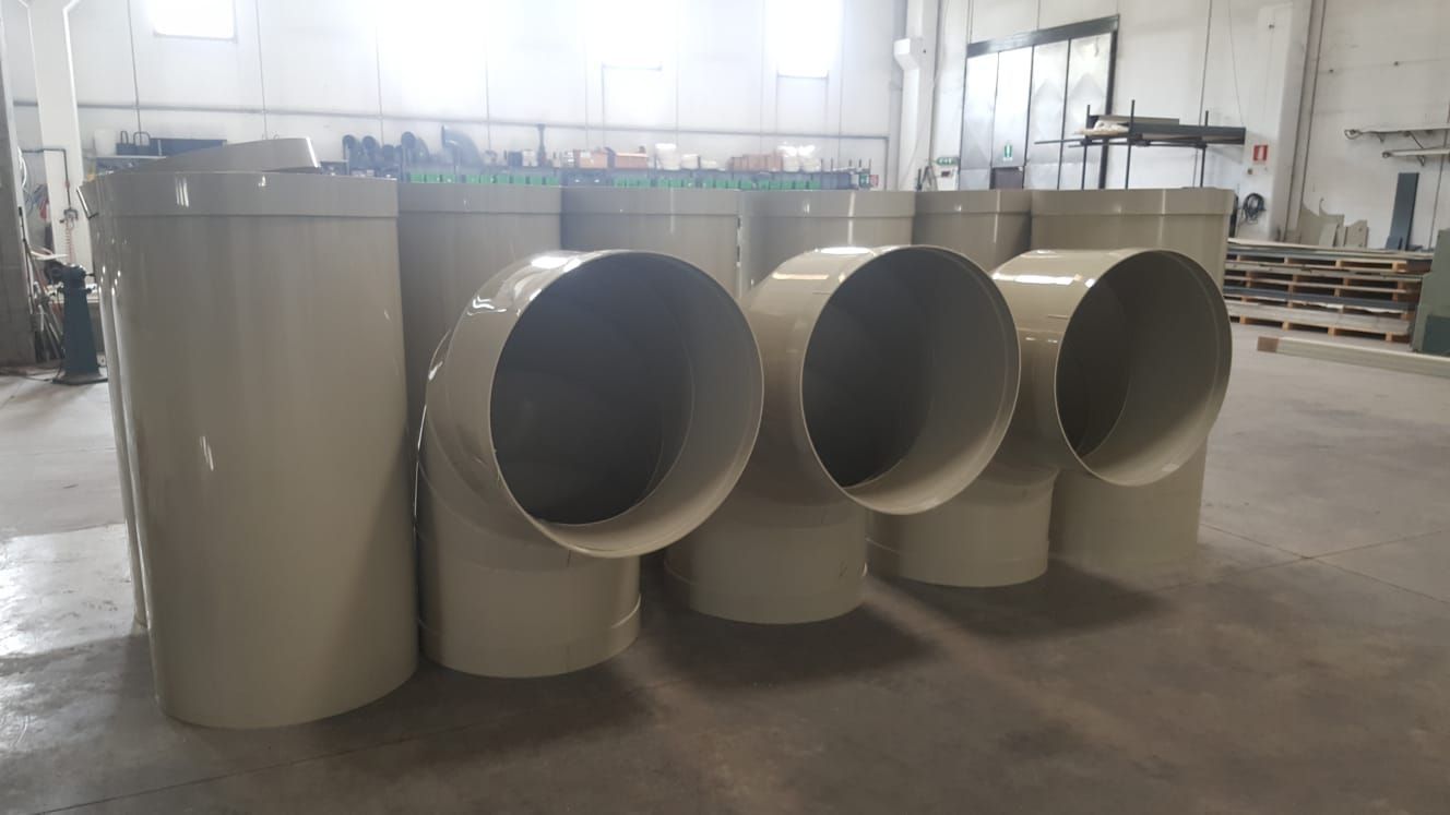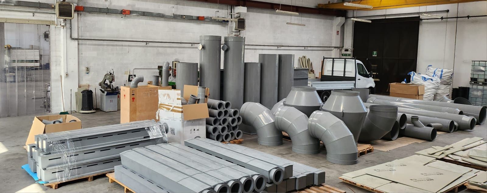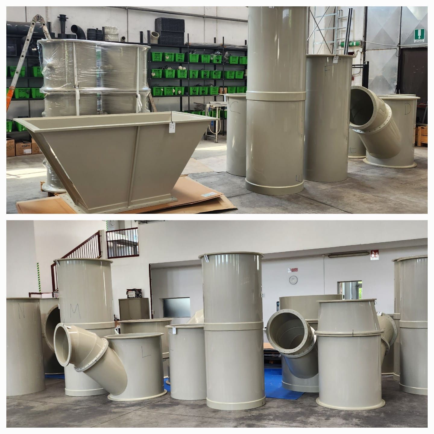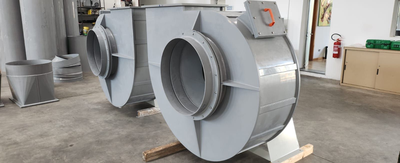 PVC, PP e PPS, materiali scelti per la loro elevata resistenza chimica e per la capacità di operare senza deterioramento in presenza di vapori aggressivi derivanti da processi industriali. I ventilatori centrifughi sono costruiti negli stessi materiali e possono essere configurati in versione