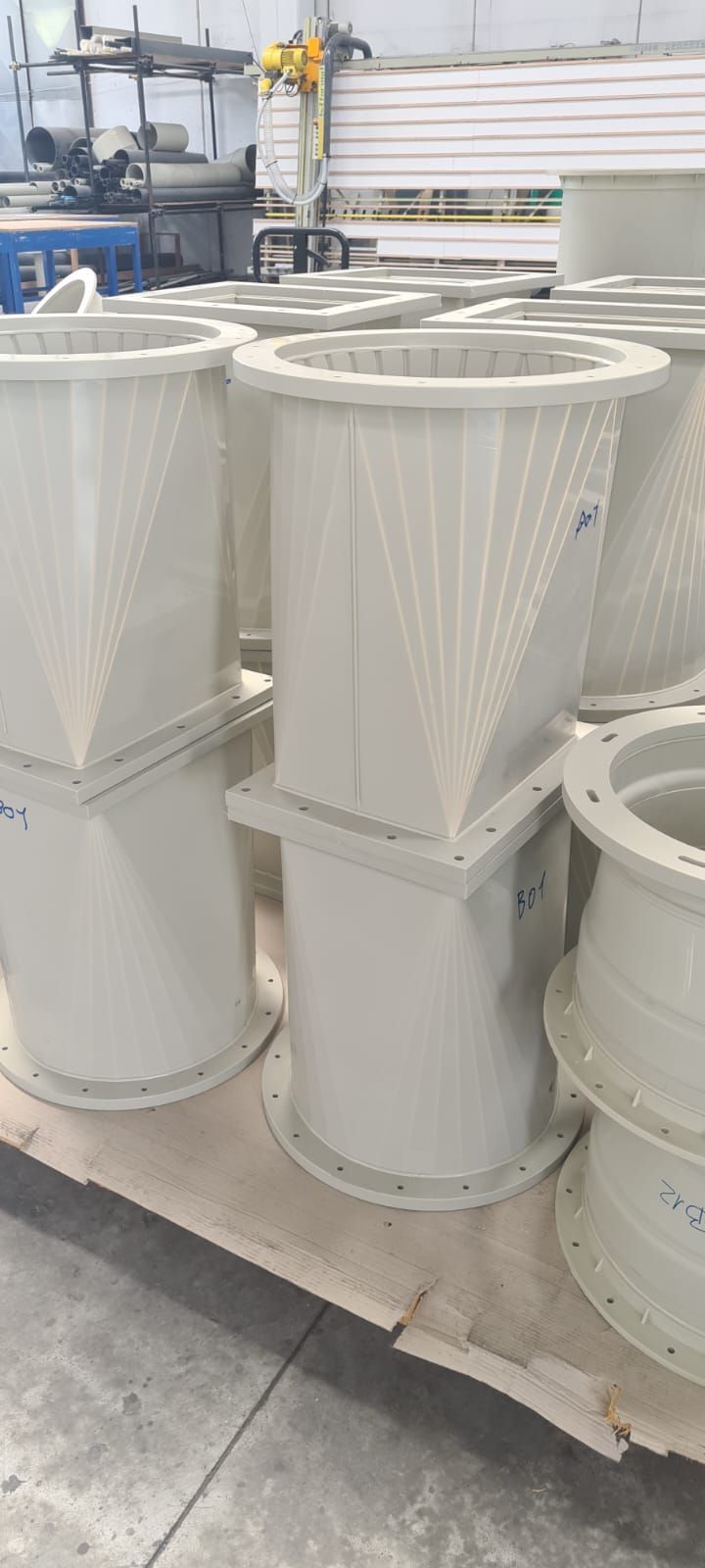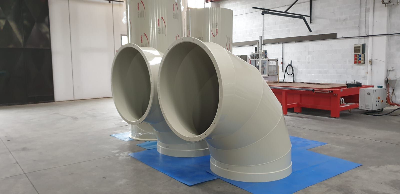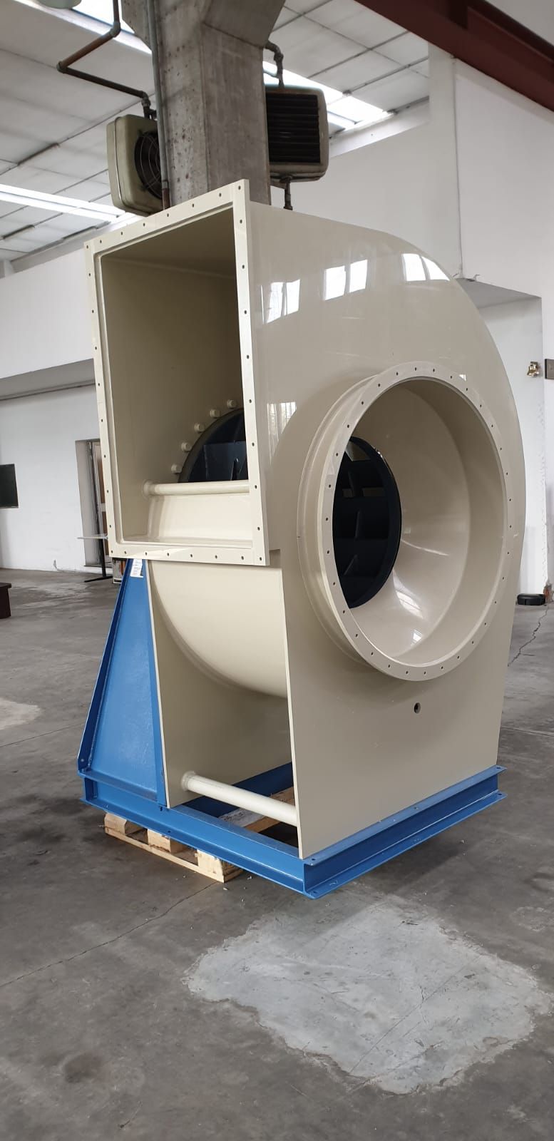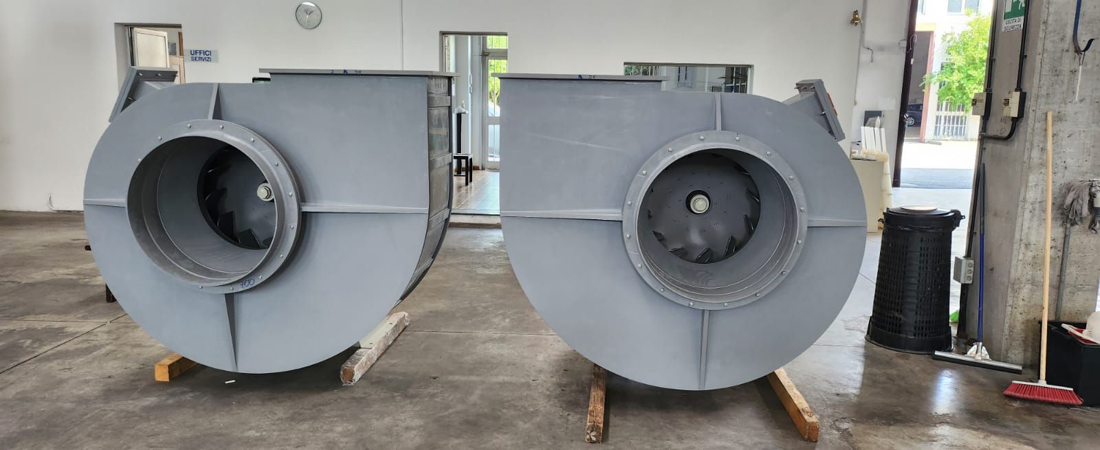 fino a 50.000 m³/h, permettendo l’integrazione in impianti di diverse dimensioni e complessità. La geometria delle pale, la robustezza dei materiali plastici e l’accuratezza delle lavorazioni assicurano un’elevata efficienza fluidodinamica e una lunga durata operativa anche in ambienti corrosivi.